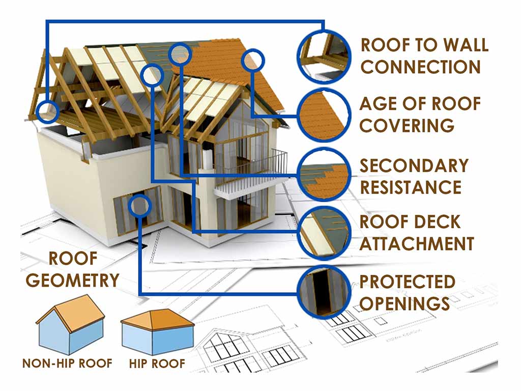 Our expert inspectors analyze various elements such as roof shape, window protection, and structural connections.