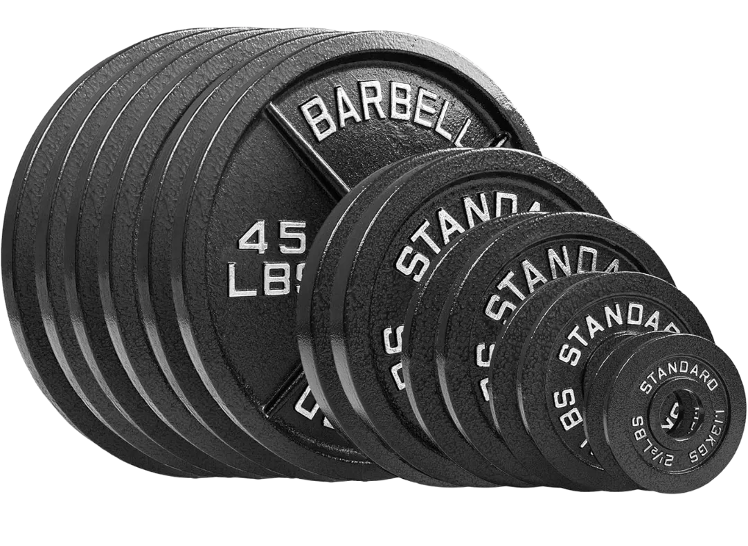 Standard plates are what most gyms have, and especially if you’re doing deadlifts or movements from the floor, you MUST be sure to put blocks, or something else under the plates on the bar, so that the bar begins at least ⅓ up your shin.