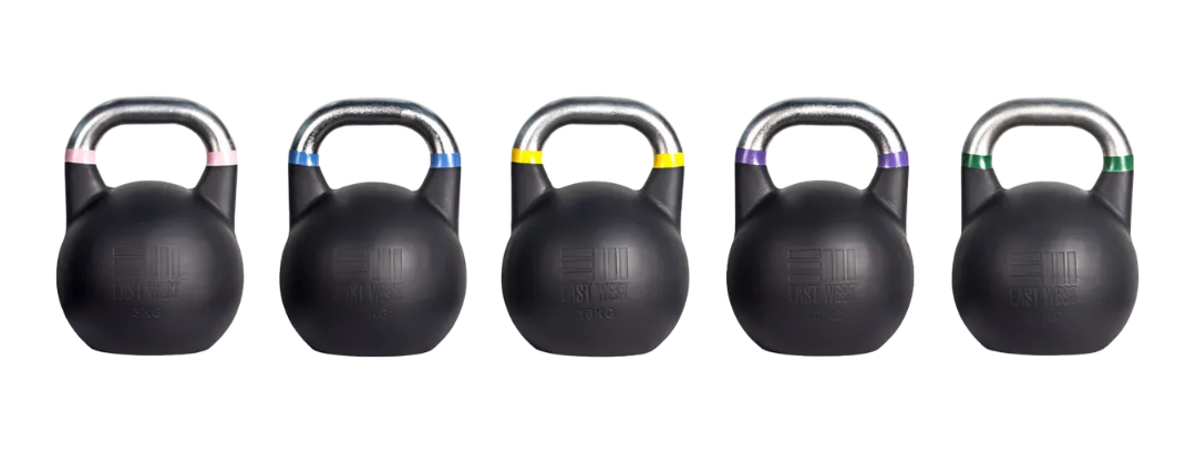 My preference for home gyms for cyclists and triathletes, as every single weight of the competition kettlebells are the exact same size, and built exactly the same.