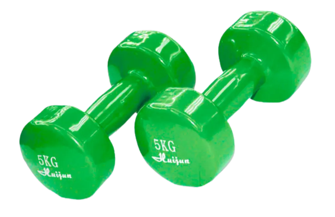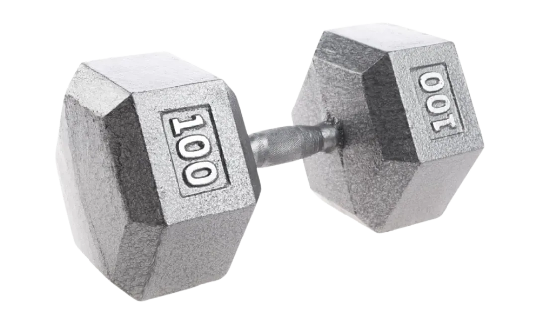 Some gyms still have the old hexagonal metal dumbbells, while others have nicely machined and polished metal dumbells up to 30# (20kg).