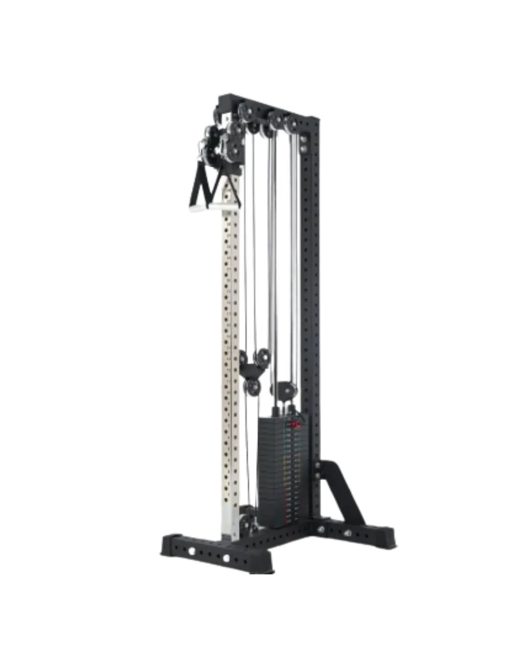 The less “useful” version of the adjustable cable stack, these will have a pulley either at the floor level, at the top of the machine, or both. These pulleys will be fixed in place.