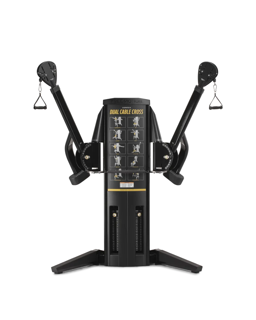 The super-cool, super adaptable and useful cousin of the cable stack is the Free Motion machine. This cable stack will have the weights for both sides located in the middle, with arms that come off at either side- some at set angles, and others with a number of angles that you can adjust the arms to, and at a variety of heights.