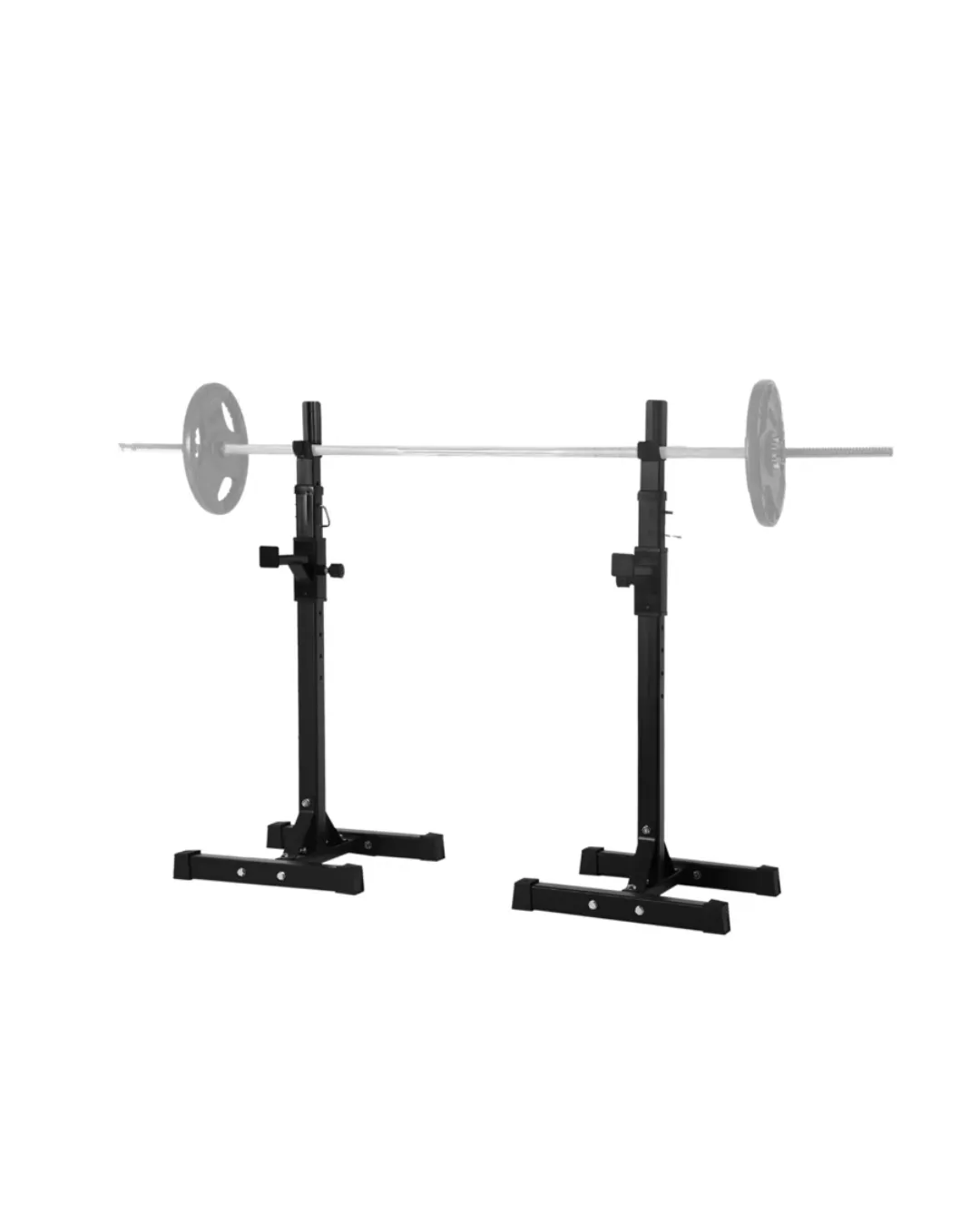 These can be movable racks that require you to add 20kg (45#) plates on the bottom to stabilize it (this version is common in CrossFit gyms), and can be adjusted to heights ranging from 1m (~3ft) tall up to almost 2m (~)6ft.