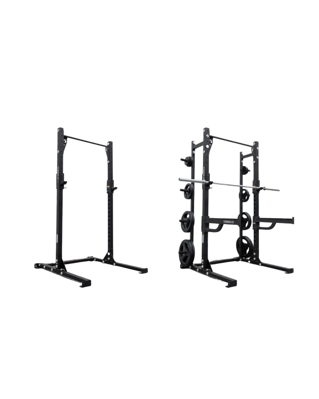 Tend to have multiple levels for you to rack the bar on. Usually used for squatting, although are also useful for overhead pressing, and some top-down hinge variations, like the Romanian Deadlift.