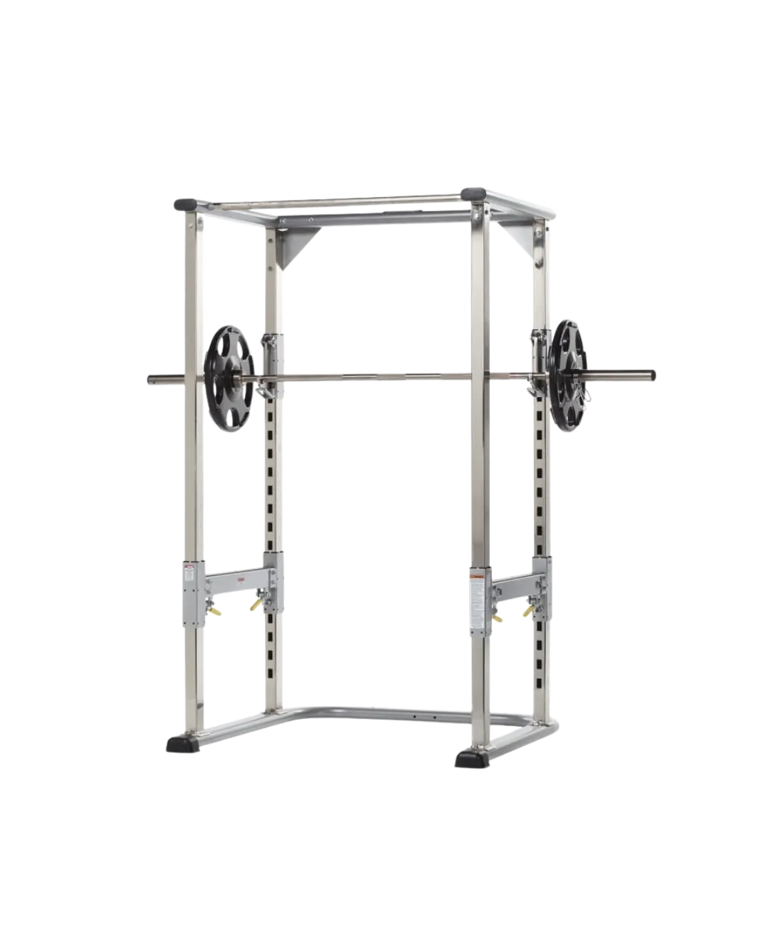 These enclosed “cages” can be used for a broad number of exercises. Called cages due to their being no way to get the bar out unless you move it on it’s side, cages often come with “pins” which can be used for self-spotting, safety for bench press, or a number of other uses.
