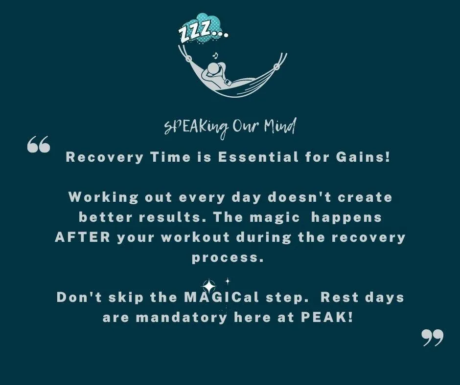 Part of our approach requires open communication with our clients. We can’t help you if we don’t know what ails you! From aches and pains inside and outside of your body, daily stress, both inside and outside of the gym, we want to help! We also firmly agree with science citing that rest days are essential. This is why you will not see “unlimited classes” as an option here at PEAK. Using a holistic approach including, fitness, nutrition, sleep, and recovery, we will be your guides to a healthier and happier lifestyle.