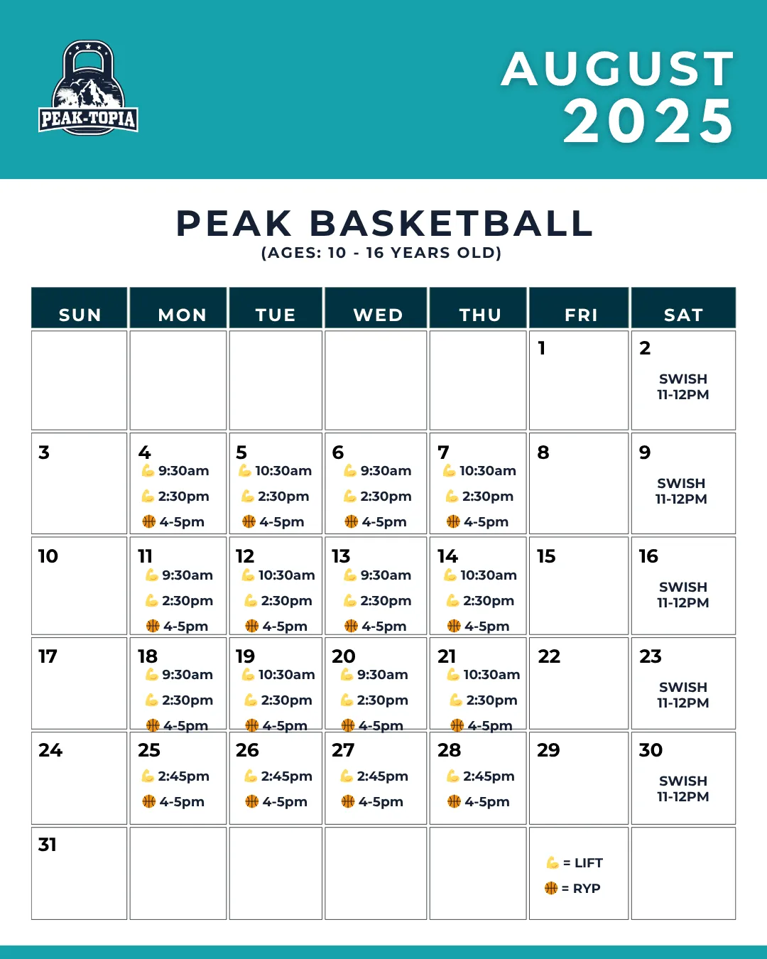 1-Day @ PEAK-topia, 1-Day @ Apex Baptist BBall Court 1 hour session